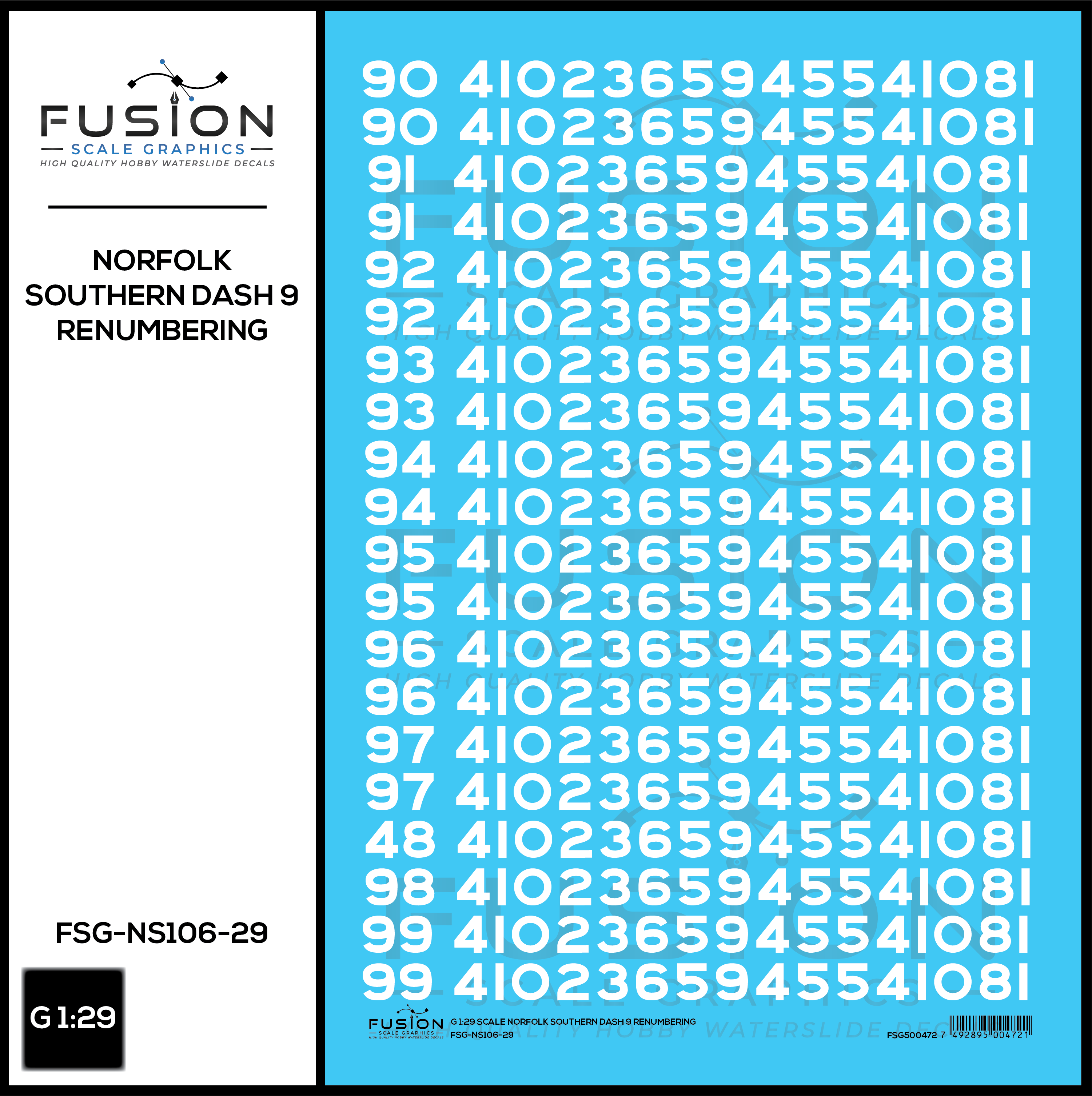 G 1:29 Scale Norfolk Southern GE Dash 9 Locomotive Renumbering Decal Set