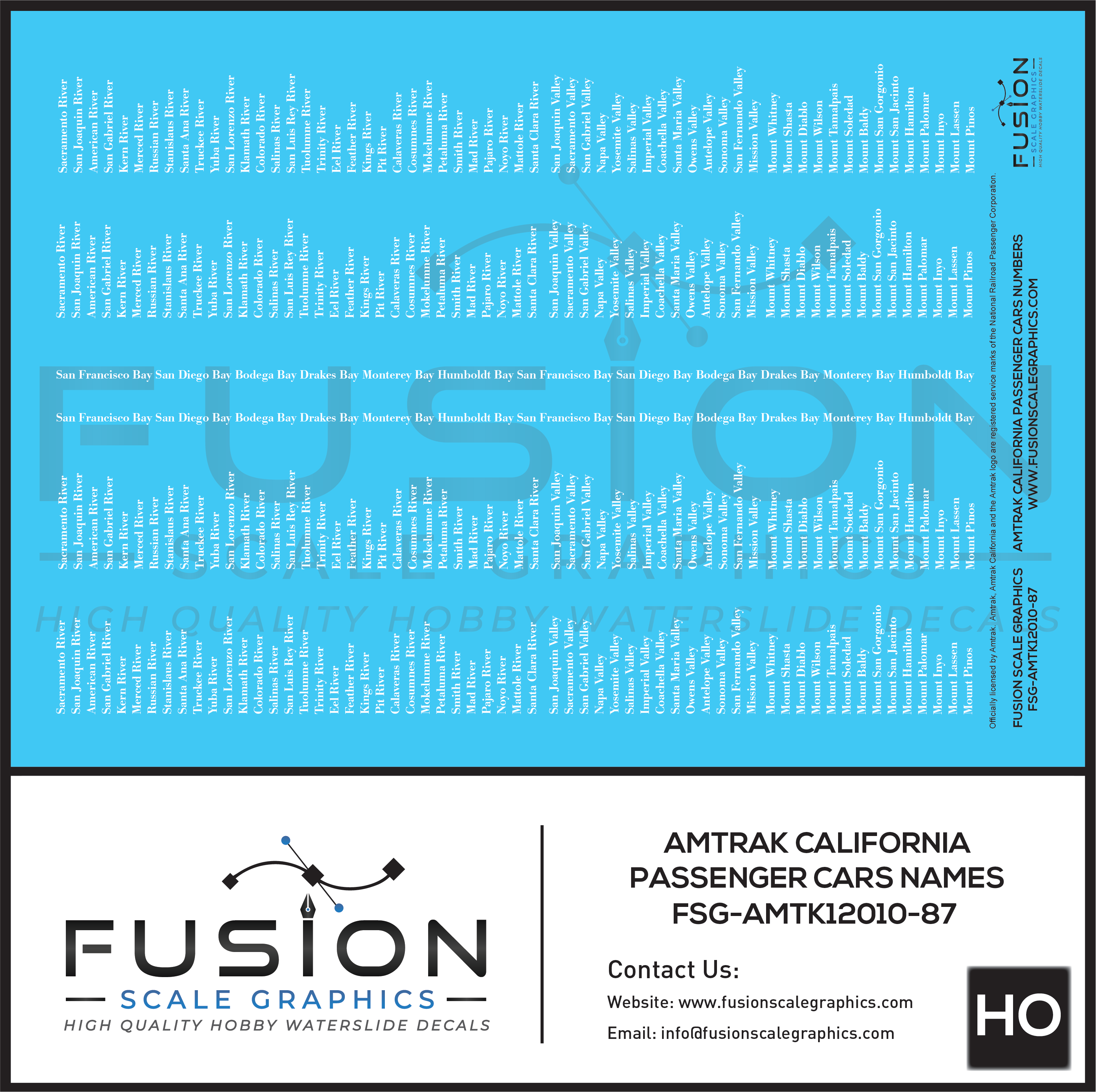 HO Scale Amtrak California Passenger Car Names Decal Set