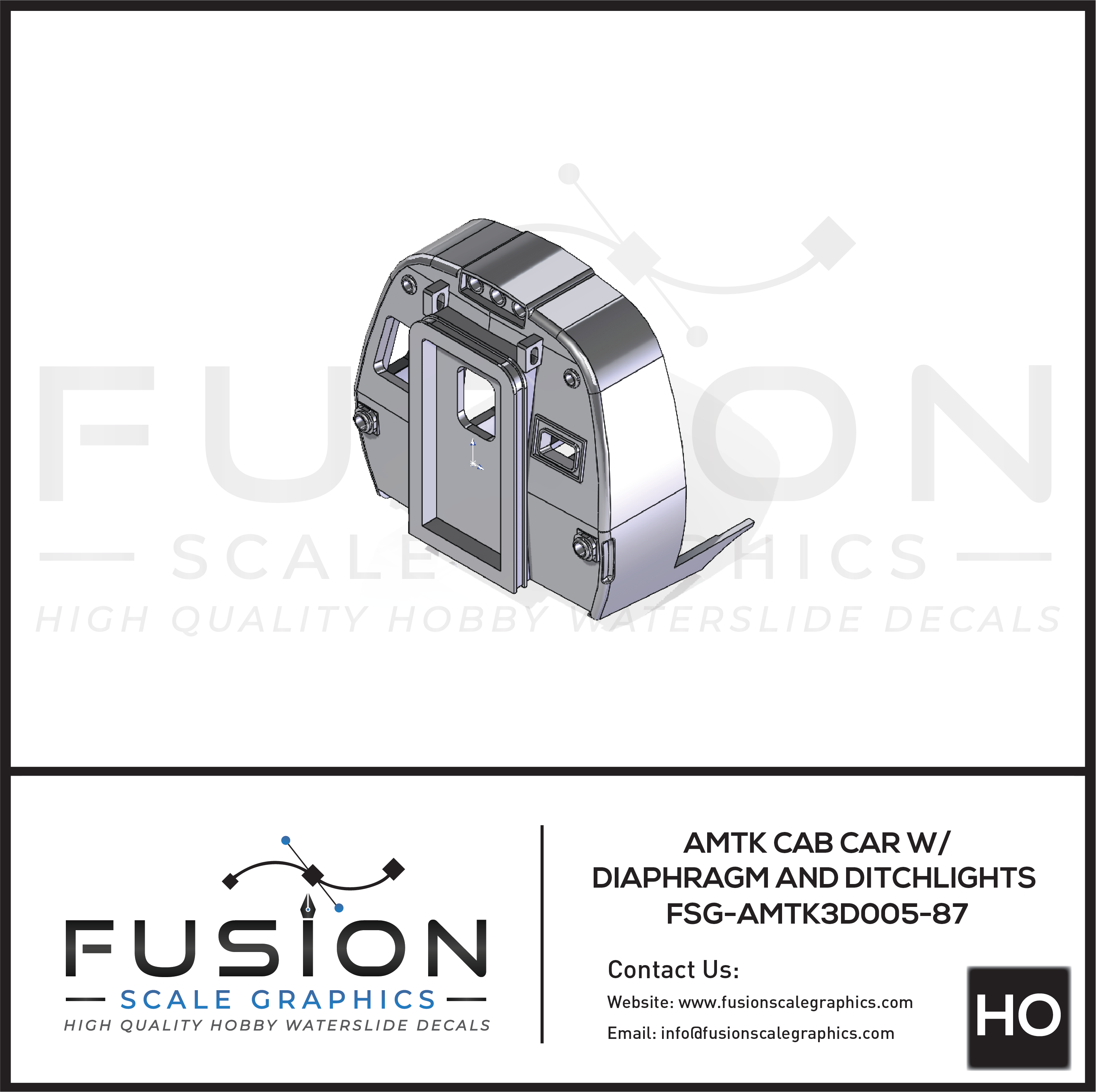 This is a 3D printed item and may require minor cleanup work. This cab will fit the Walthers HO scale Metroliner.