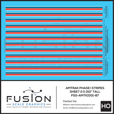 Home Shop Fusion Scale Graphics HO Scale Amtrak Phase I Stripes Sheet 2 0.310" Tall Decal Set