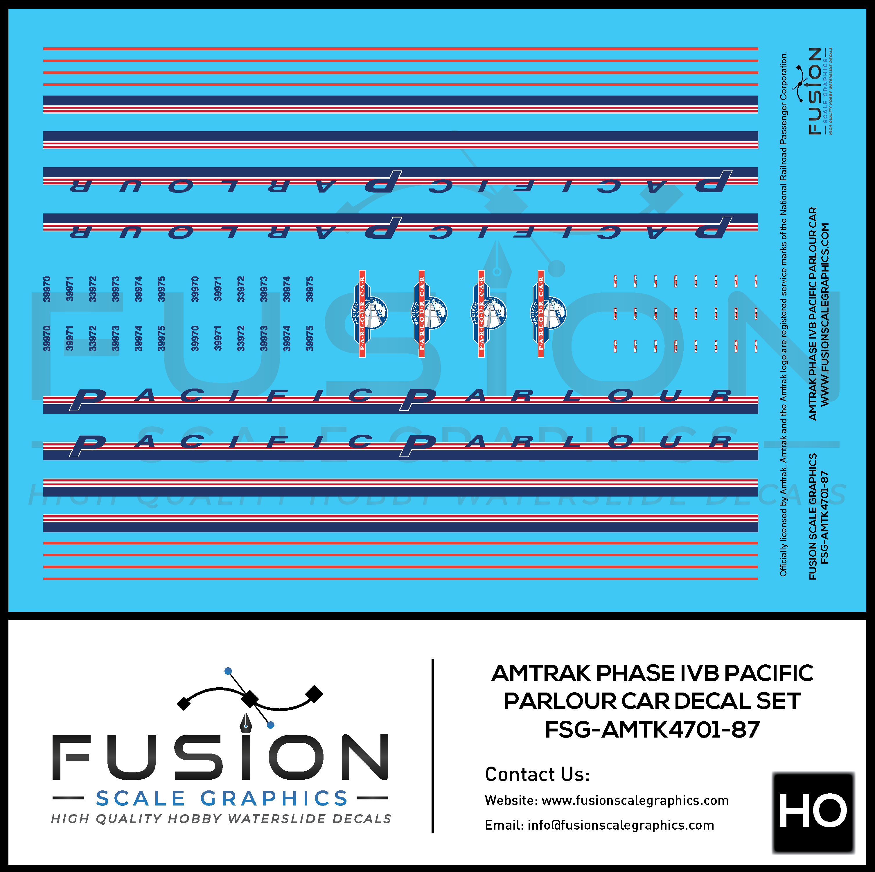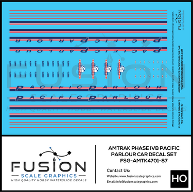 HO Scale Amtrak Phase IVb Pacific Parlour Car Decal Set