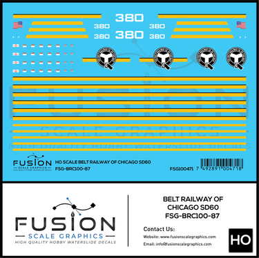 HO Scale Belt Railway of Chicago SD60 380 Locomotive Decal Set