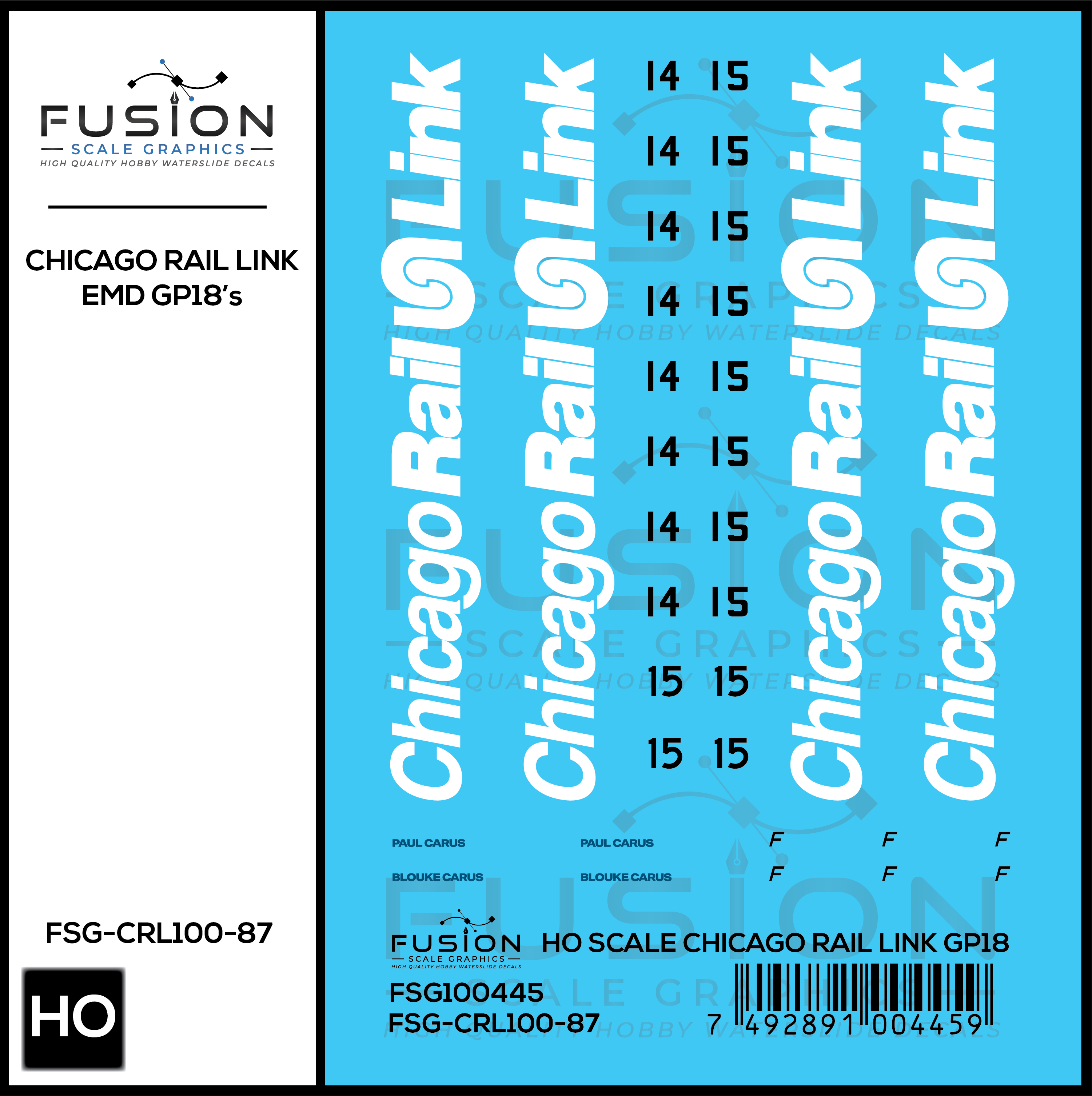 HO Scale Chicago Rail Link EMD GP18 14 & 15 Locomotive Decal Set