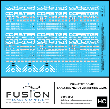 HO Scale Coaster Rail NCTD Modern Passenger Car Decals