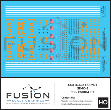 Home Shop Fusion Scale Graphics HO Scale CSX Black Hornet EMD SD40-2 Locomotive Decal Set