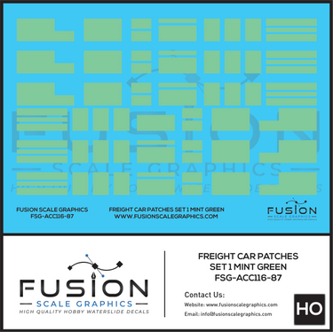 Home Shop Fusion Scale Graphics HO Scale Freight Car Patches Set 1 Mint Green Decal Set