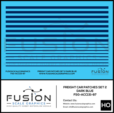 HO Scale Freight Car Patches Set 2 Dark Blue Decal Set