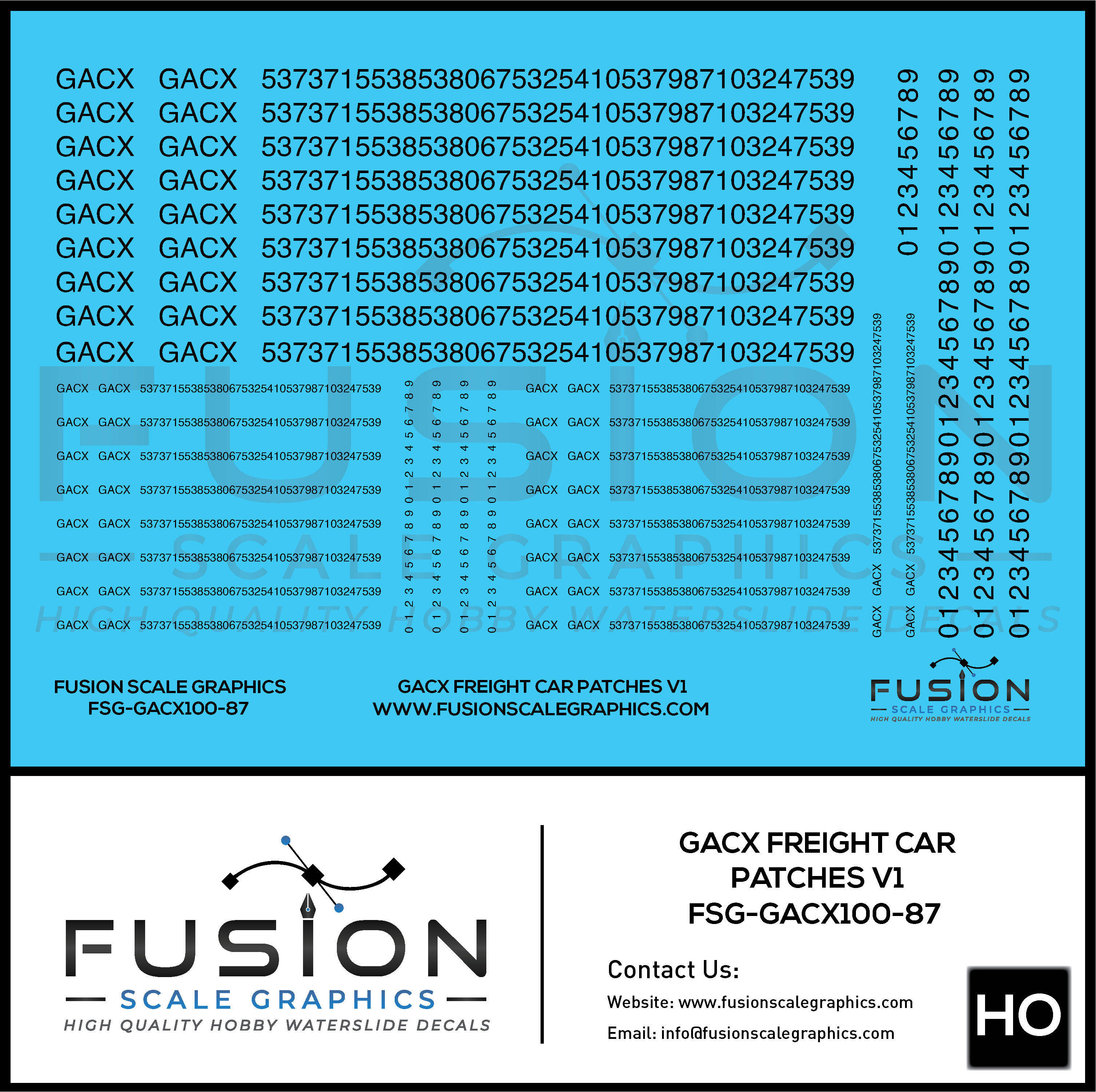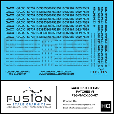 HO Scale GACX Freight Car Lettering Decal Set Font 1