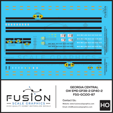 HO Scale Georgia Central EMD GP38-2 GP40-2 Locomotives Decal Set