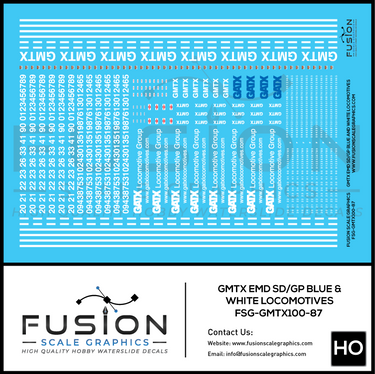 HO Scale GMTX Blue & White EMD GP SD Locomotive Decal Set