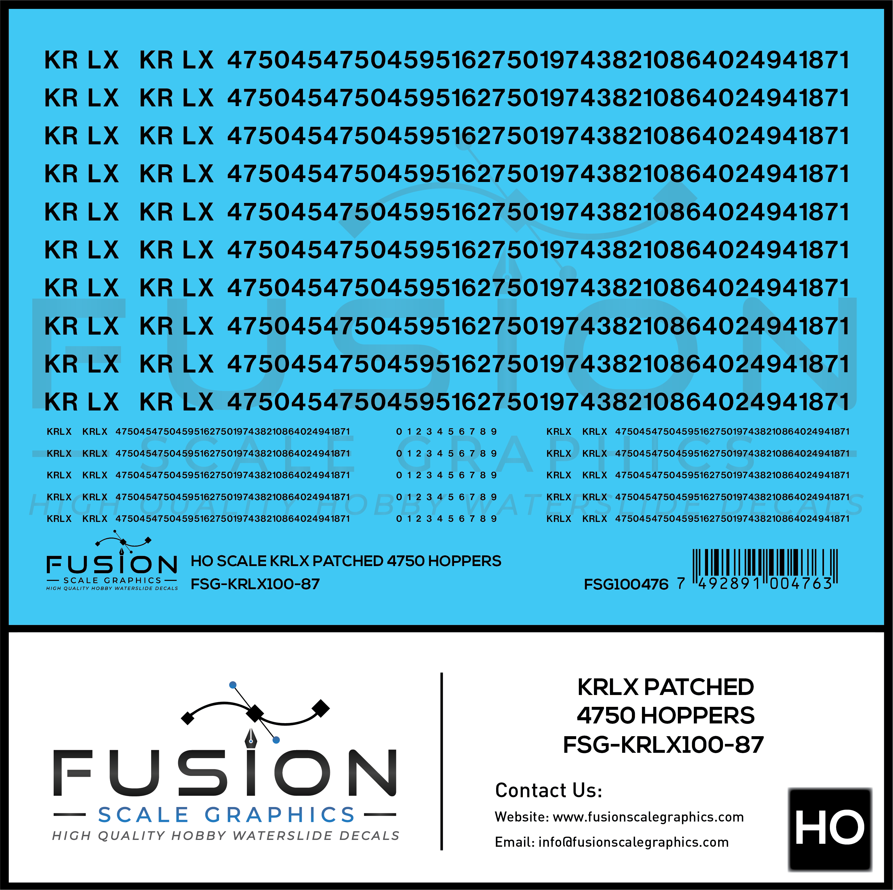 Home Shop Fusion Scale Graphics HO Scale KRLX 4750 Hoppers Patching Decal Set