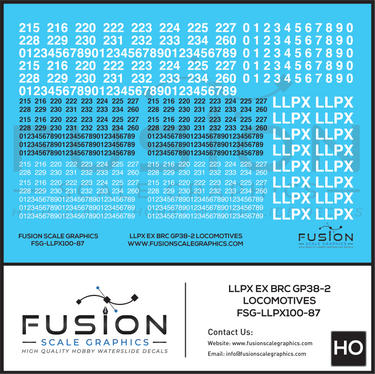 HO Scale LLPX ex BRC EMD GP38-2 Locomotives Decal Set