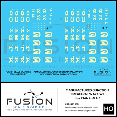 Enhance the authenticity of your HO scale railway with this Manufactures Junction Railway EMD SW1 locomotive decal set. The cream color decal set includes all the necessary markings and details to bring your model to life. Crafted with precision and perfect for both beginners and experienced enthusiasts alike.