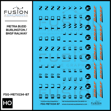 HO Scale Metra Burlington / BNSF Railway Letterboards ex Burlington Budd Cars Decal Set