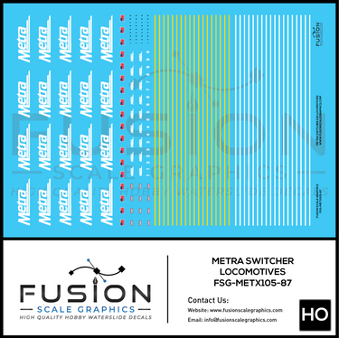 HO Scale Metra EMD SW Switcher Locomotives Decal Set