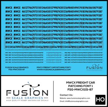 HO Scale MWCX Freight Car Patching Decal Set Font 1