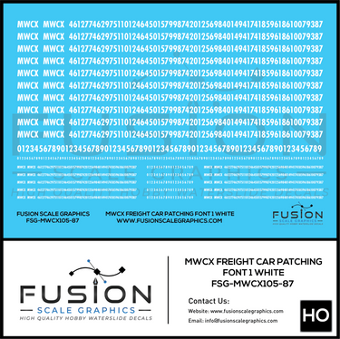 HO Scale MWCX Freight Car Patching Decal Set Font 1 White