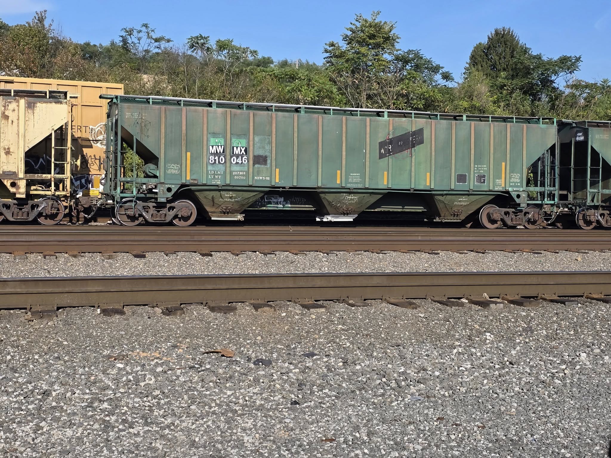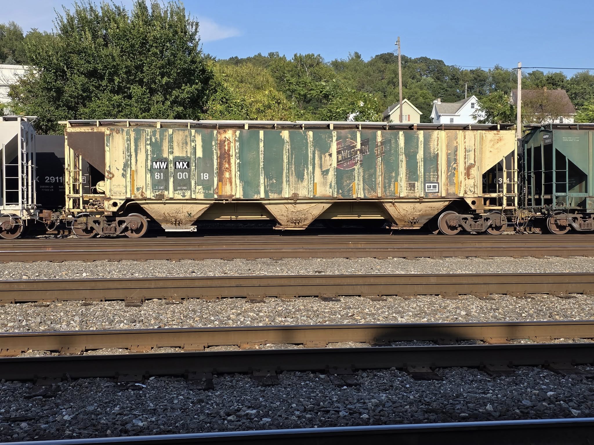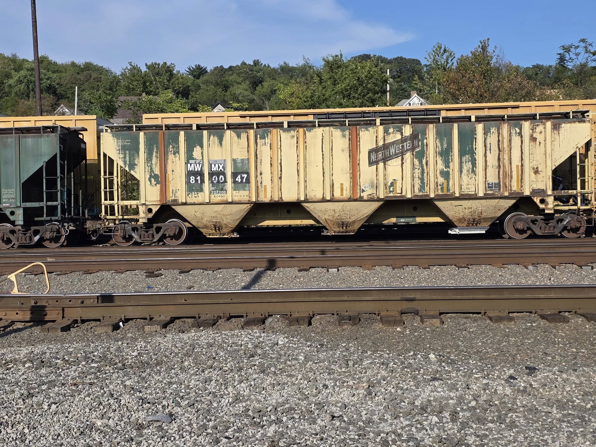 Decal set includes just the MWMX white lettering on black patch for the car sides and car ends. Commonly found on ex CNW yellow or green covered hoppers, prototypes feature several styles of previous numbers or stencils from previous owner’s post CNW.