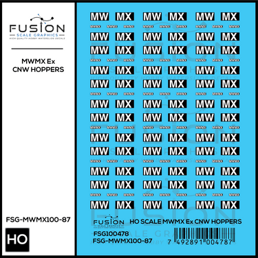 Home Shop Fusion Scale Graphics HO Scale MWMX Ex CNW Covered Hoppers Patch Decal Set
