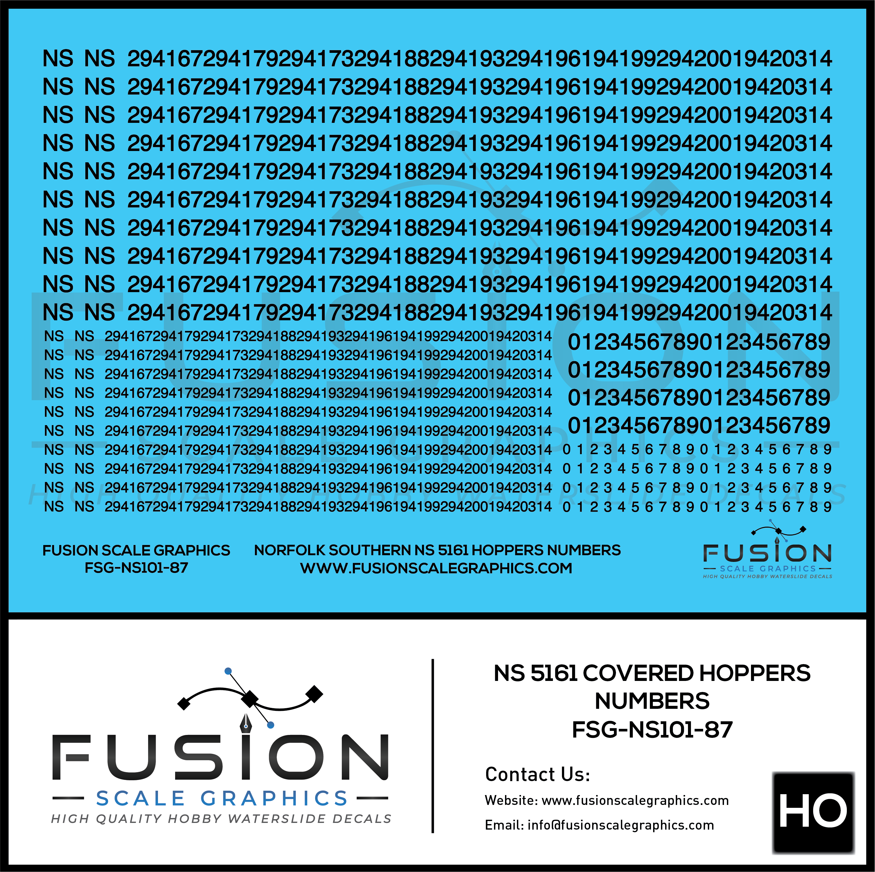 HO Scale Norfolk Southern 5161 NS Covered Hoppers Numbering Decal Set