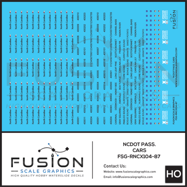 HO Scale North Carolina NCDOT Passenger Cars Decal Set
