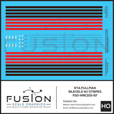 Home Shop Fusion Scale Graphics HO Scale RTA Pullman BiLevel Cars Decal Set W/ Stripes
