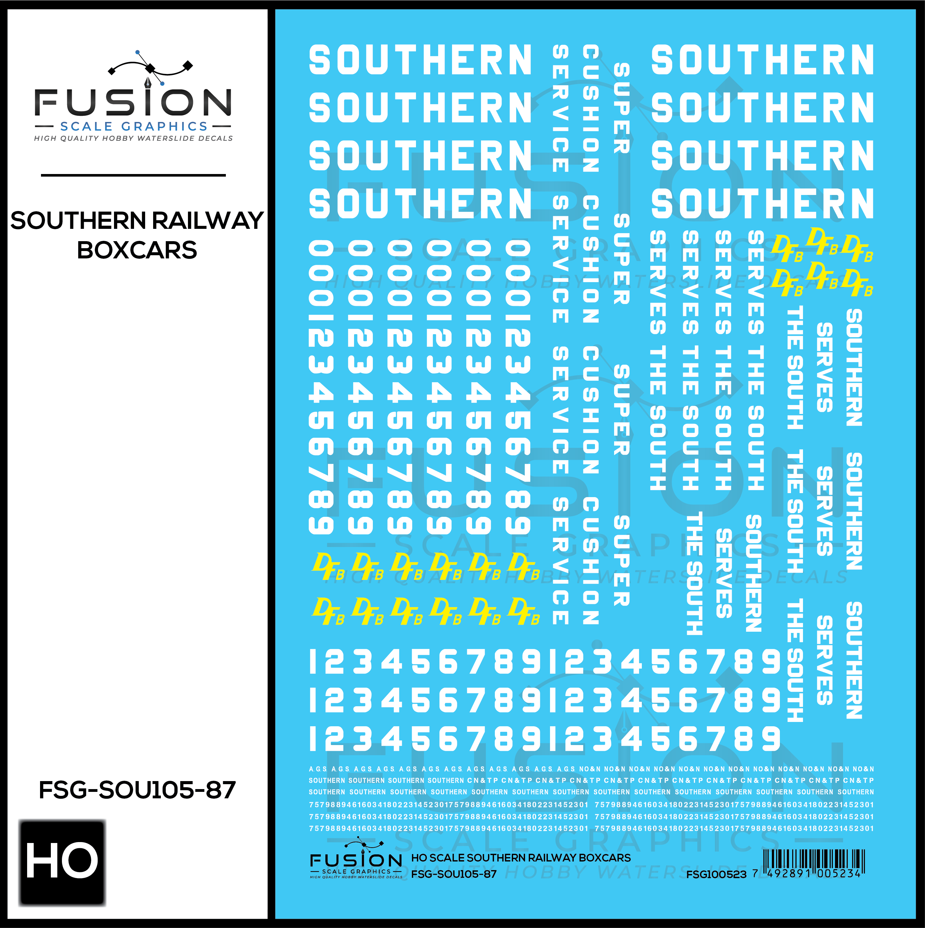 Home Shop Fusion Scale Graphics HO Scale Southern Railway Boxcars Decal Set