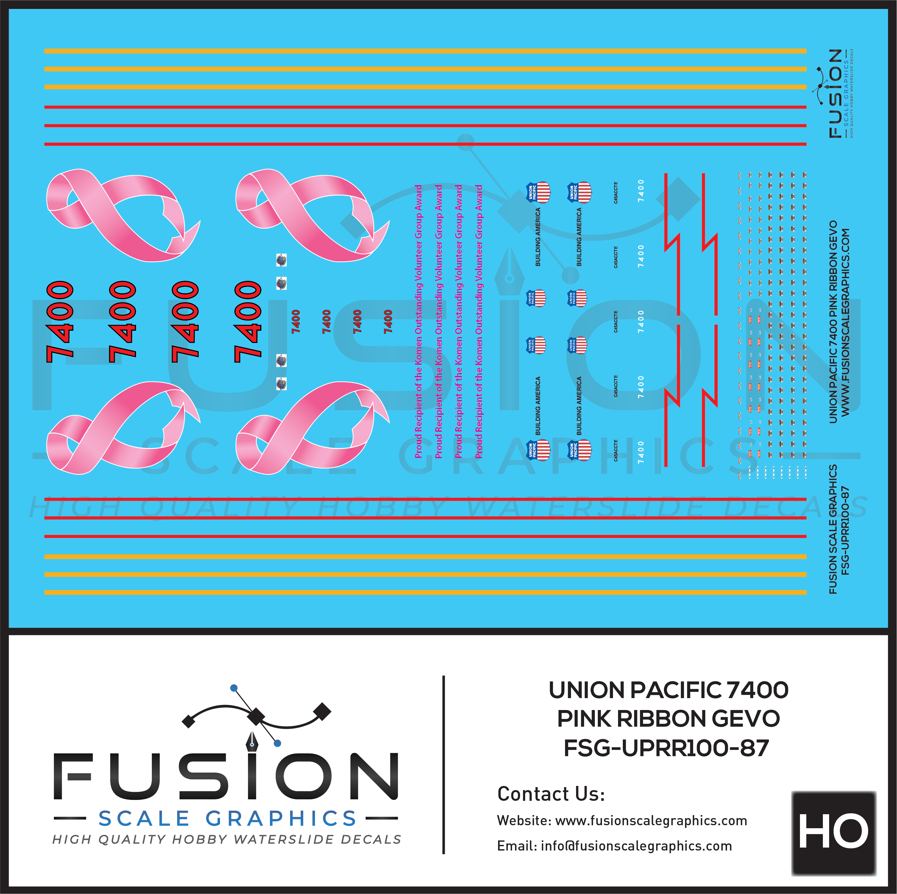 HO Scale Union Pacific 7400 Pink Ribbon GEVO Locomotive Decal Set
