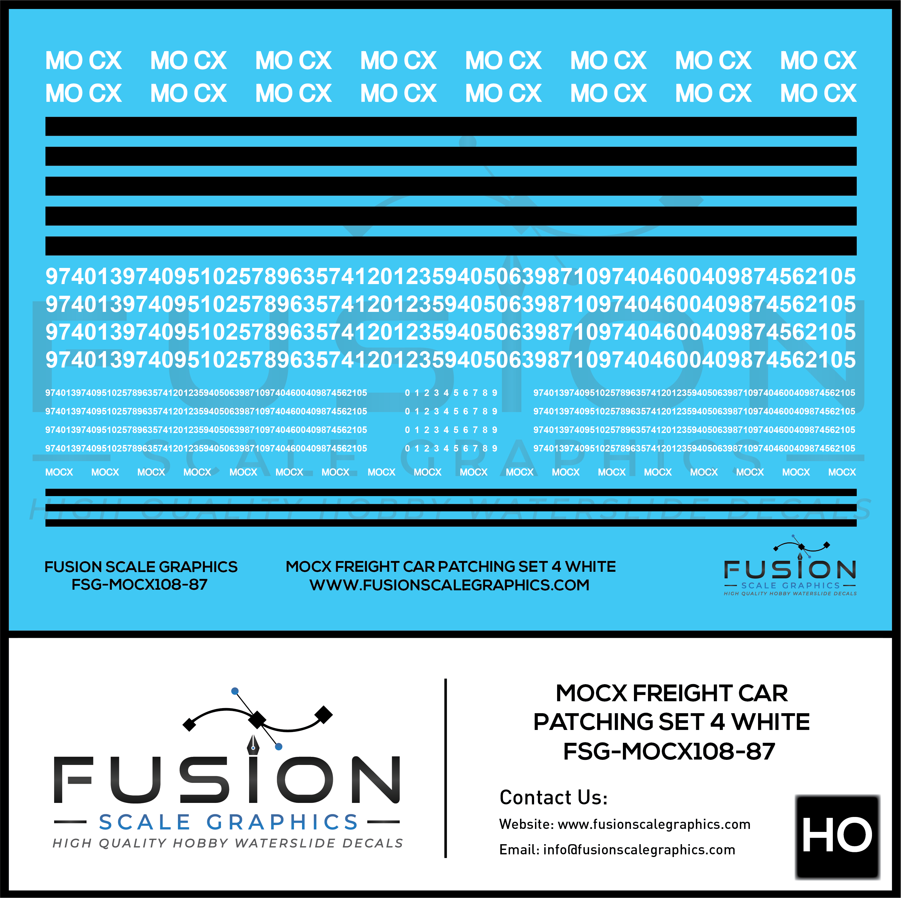 Home Shop Fusion Scale Graphics HO Scale White MOCX Covered Hoppers Patching Decal Set 4