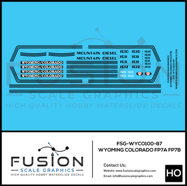 HO Scale Wyoming and Colorado EMD FP7A FP7B Locomotive Decal Set