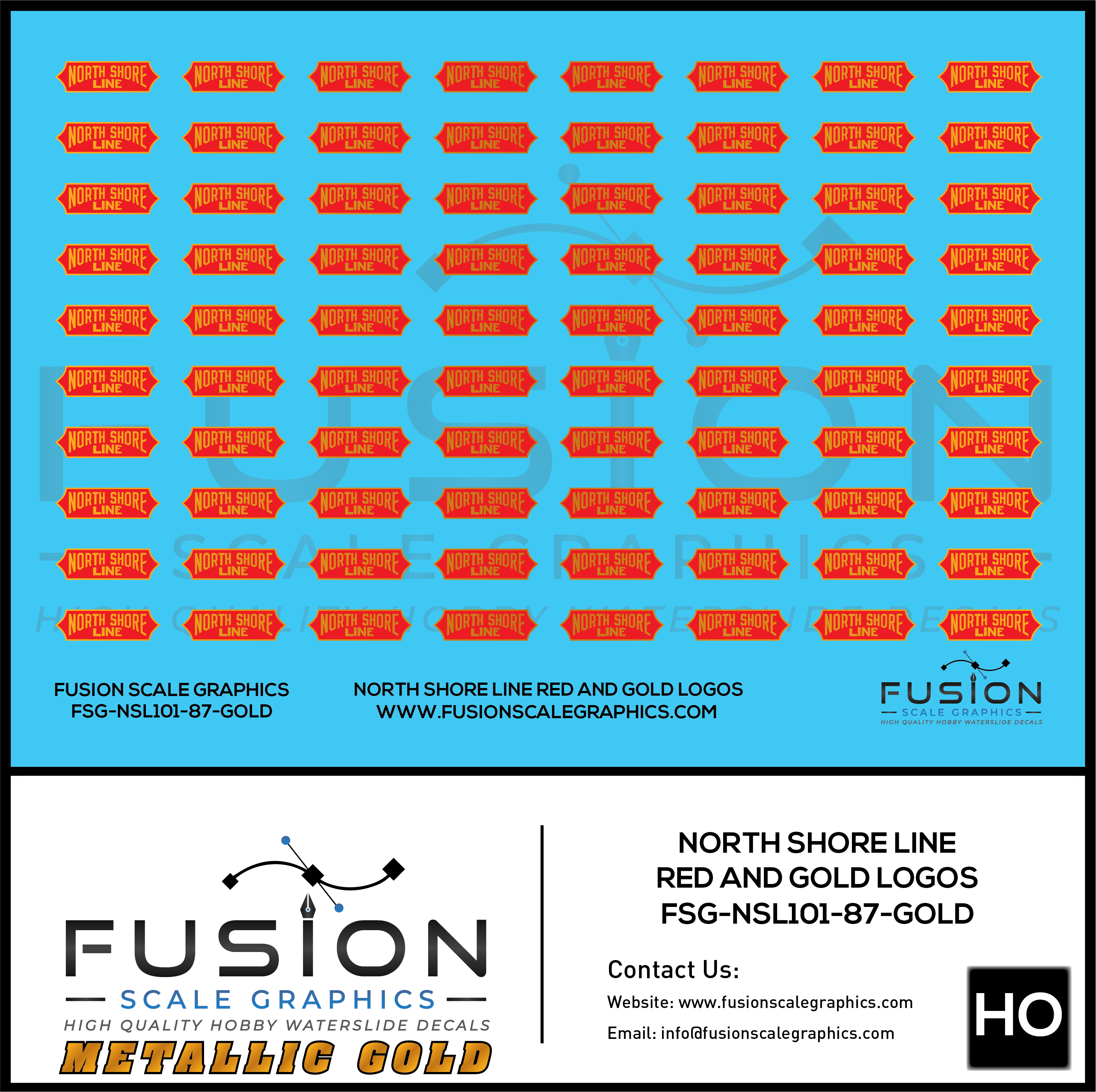 Metallic Gold HO Scale North Shore Line Red and Gold Logos Decal Set