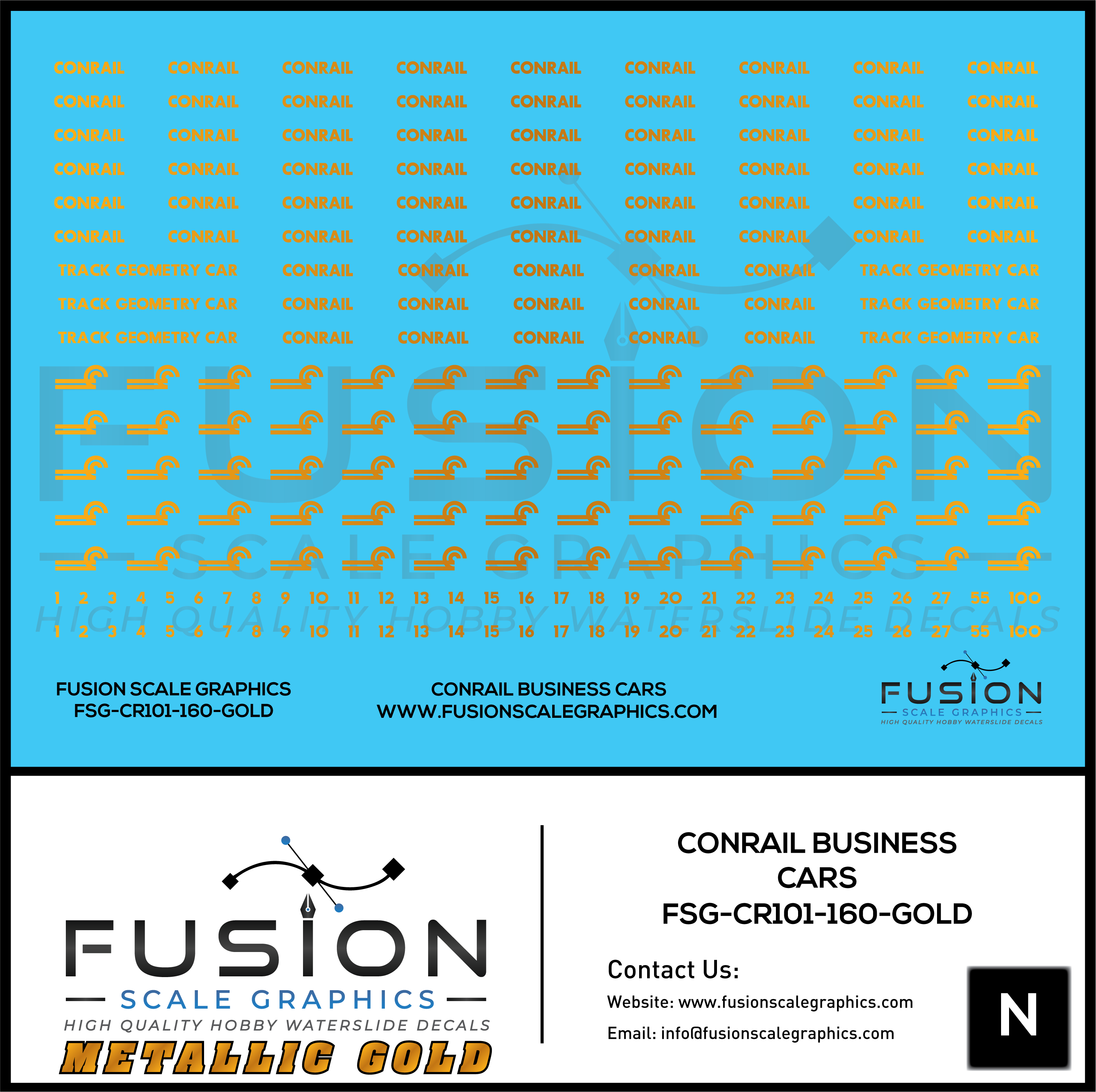 Metallic Gold N Scale Conrail Business Cars Decal Set