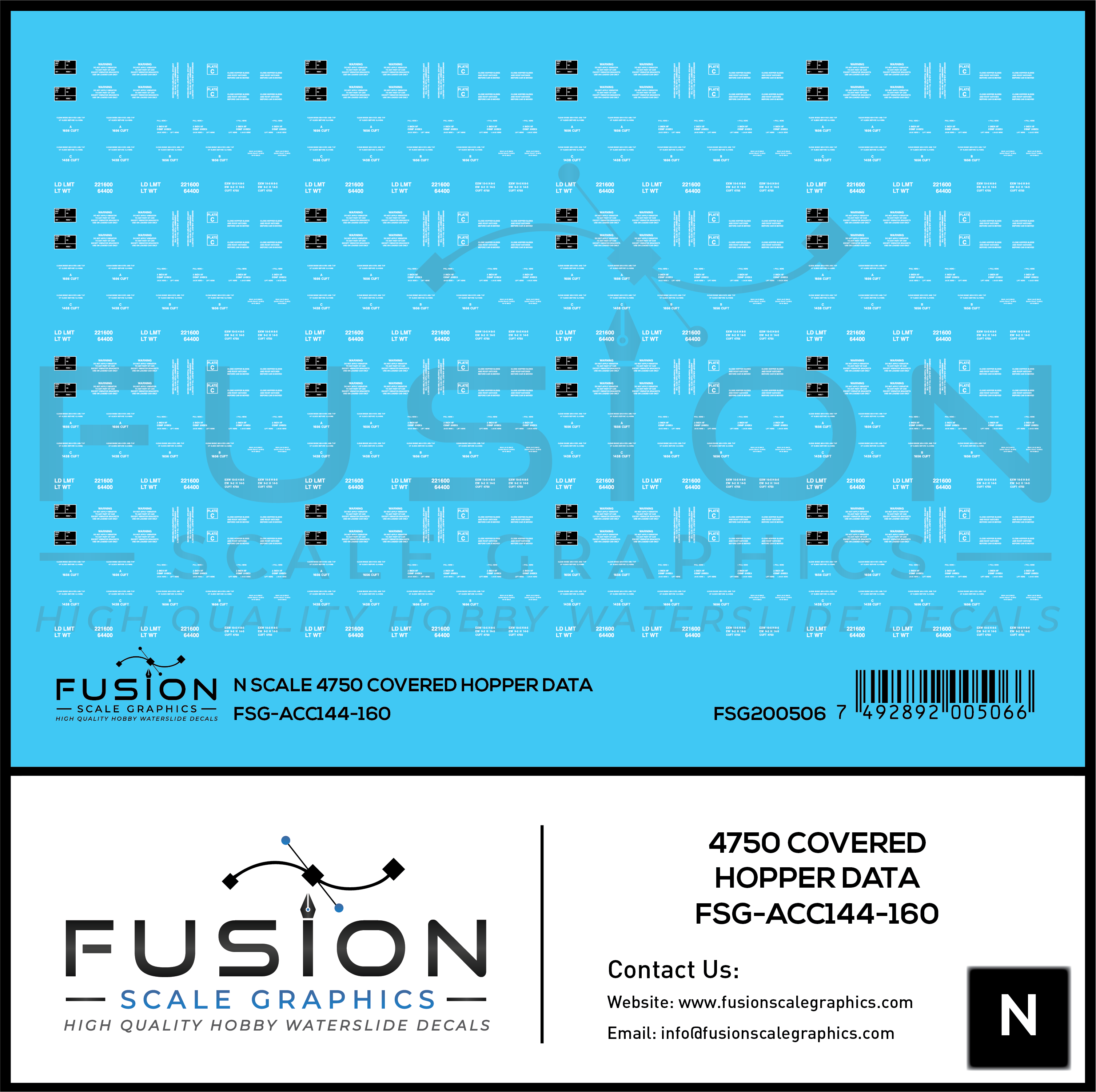4750 Covered Hopper Data Decal Set. Set will complete 6 cars.