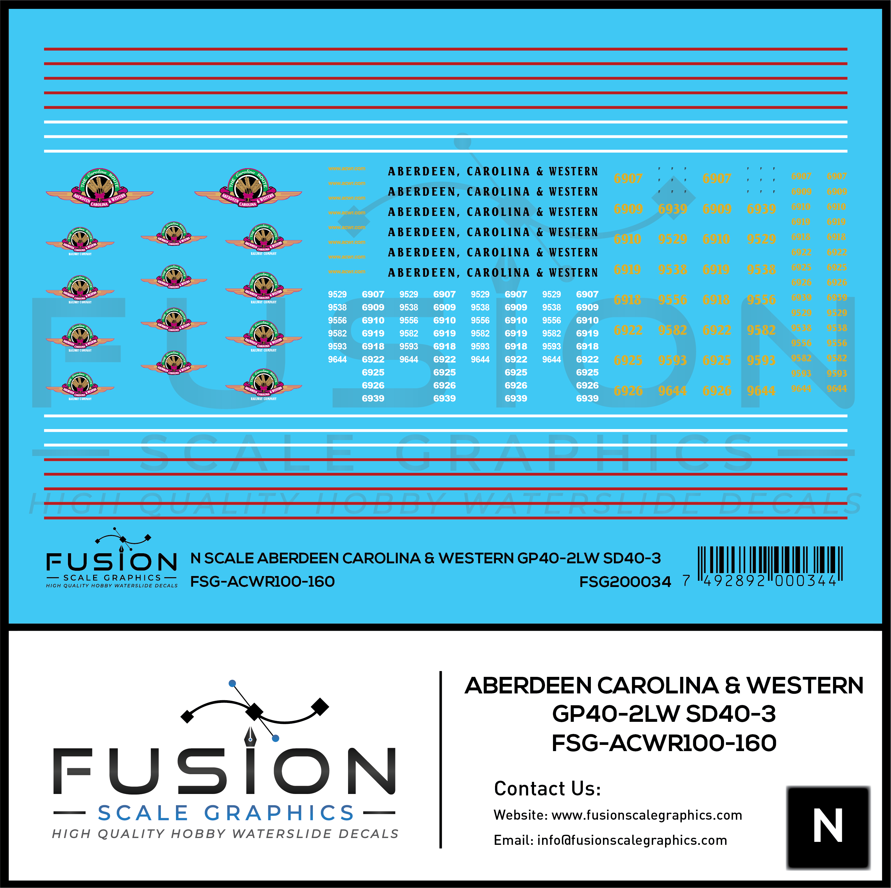 N Scale Aberdeen Carolina & Western GP40-2LW & SD40-3 Locomotive Decal Set