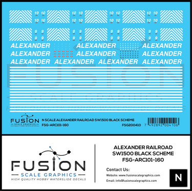 Home Shop Fusion Scale Graphics N Scale Alexander Railroad SW1500 Black Scheme Locomotive Decal Set