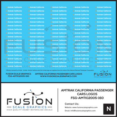 N Scale Amtrak California Passenger Car Logos Decal Set