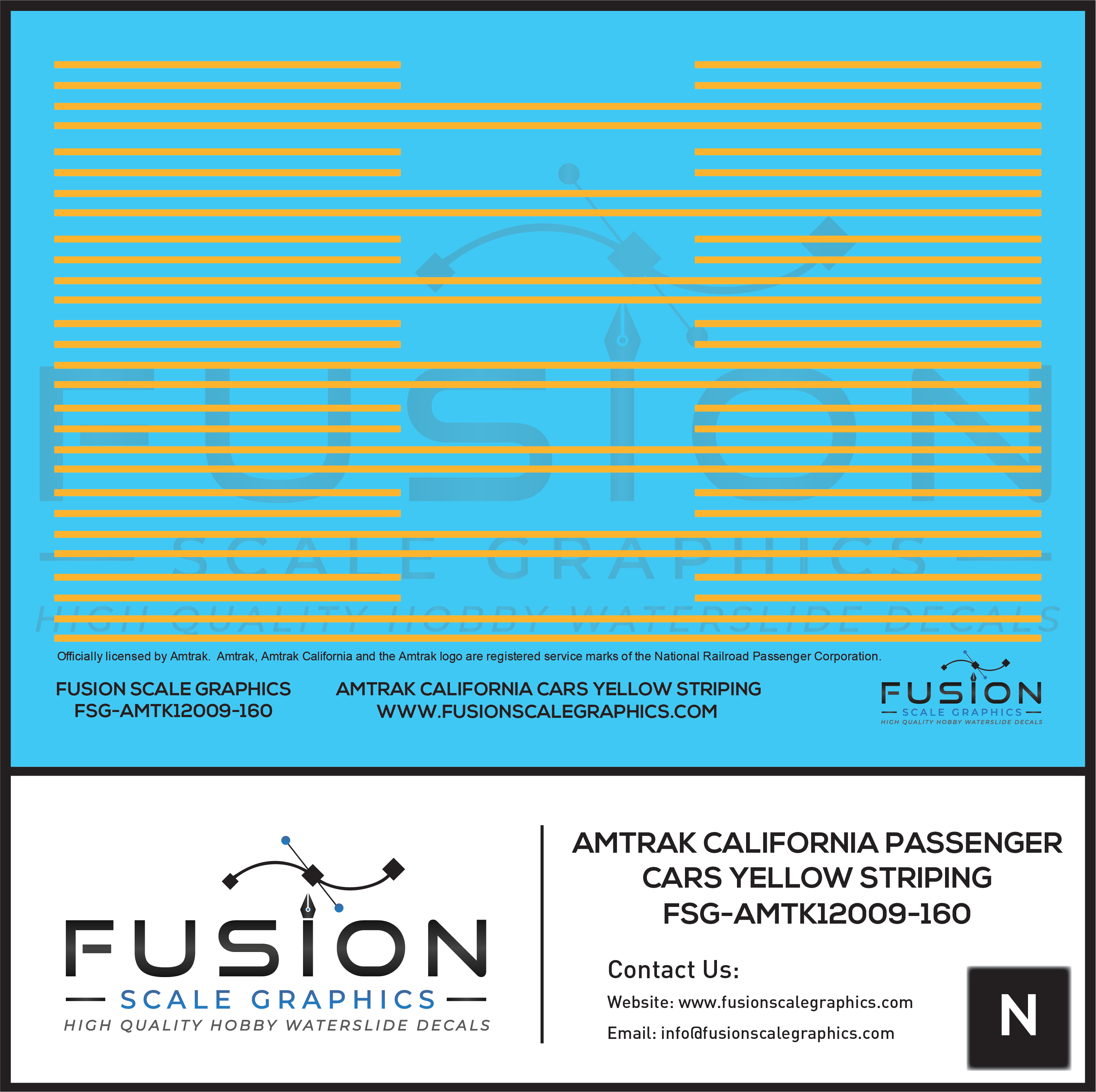 Home Shop Fusion Scale Graphics N Scale Amtrak California Passenger Car Yellow Striping Decal Set