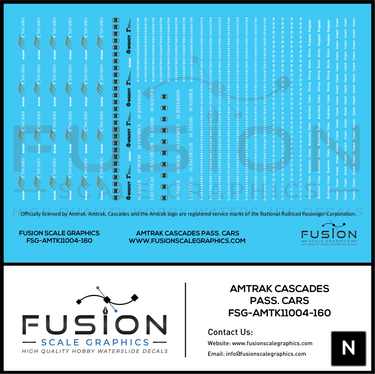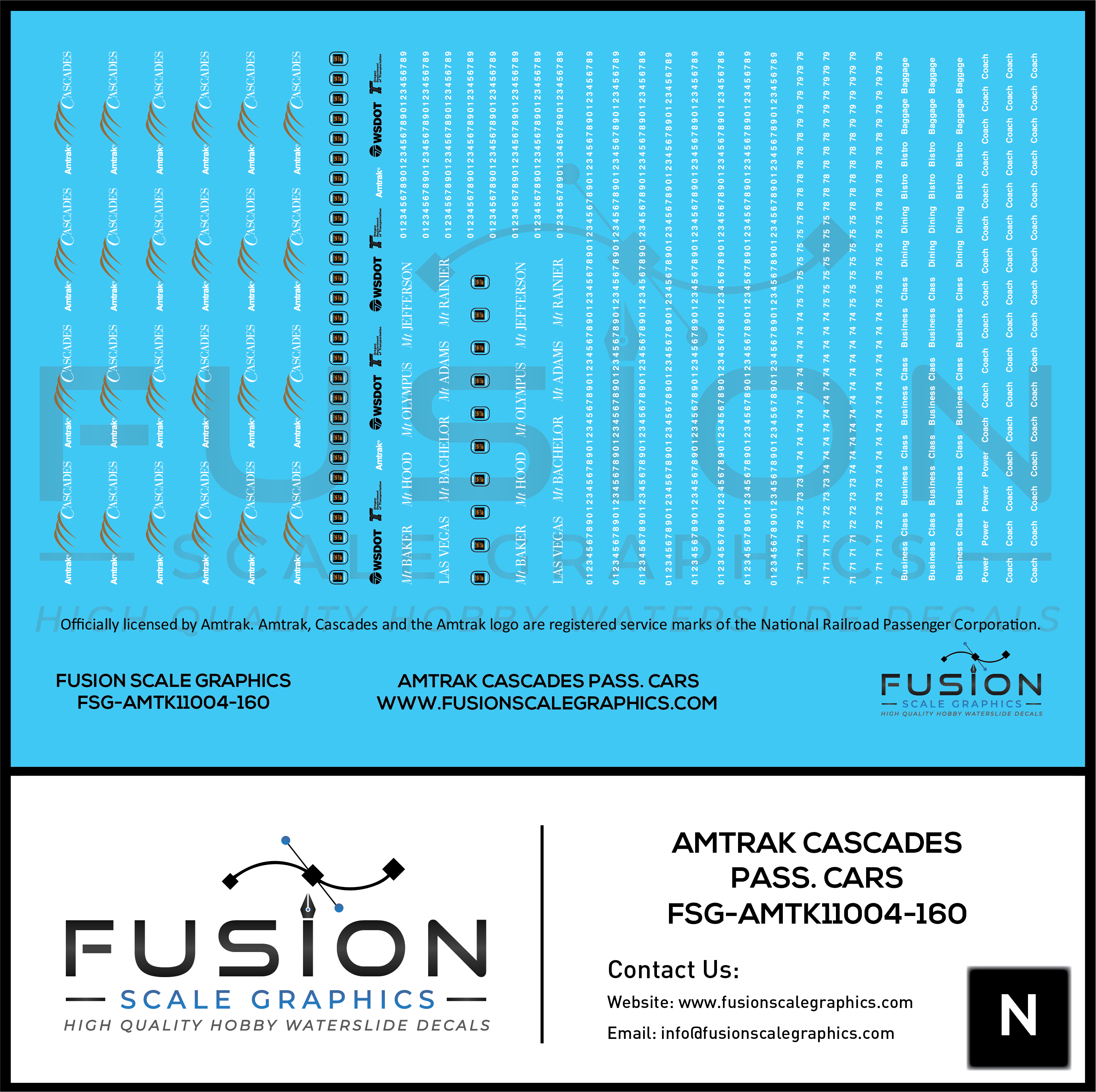 N Scale Amtrak Cascades Passenger Cars Decal Set