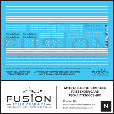 N Scale Amtrak Pacific Surfliner Passenger Cars Decal Set
