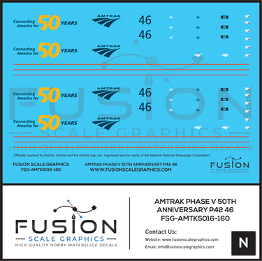 N Scale Amtrak Phase V 50th Anniversary P42 46 Locomotive Decal Set