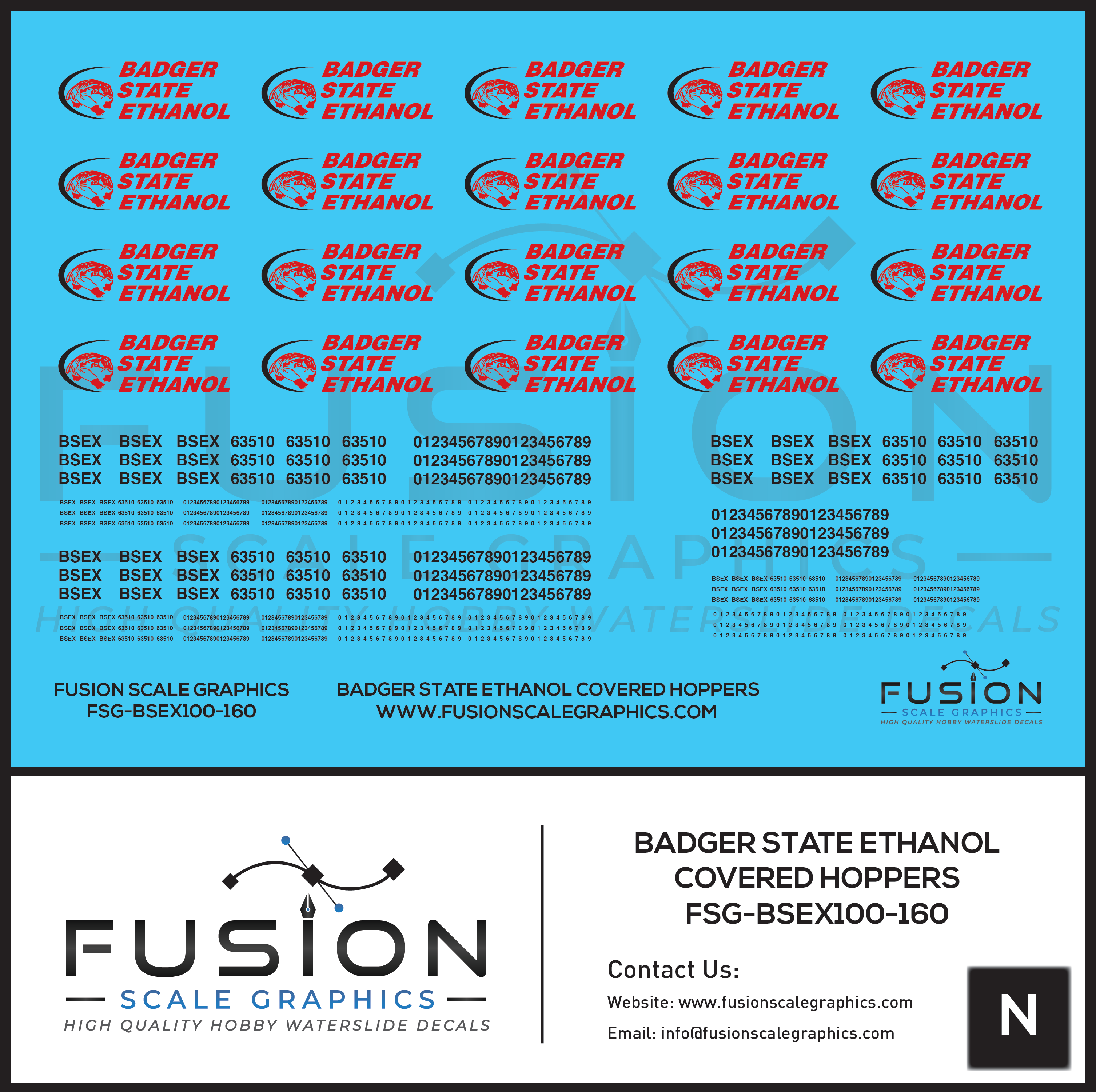 Home Shop Fusion Scale Graphics N Scale Badger State Ethanol BSEX Covered Hopper Decal Set