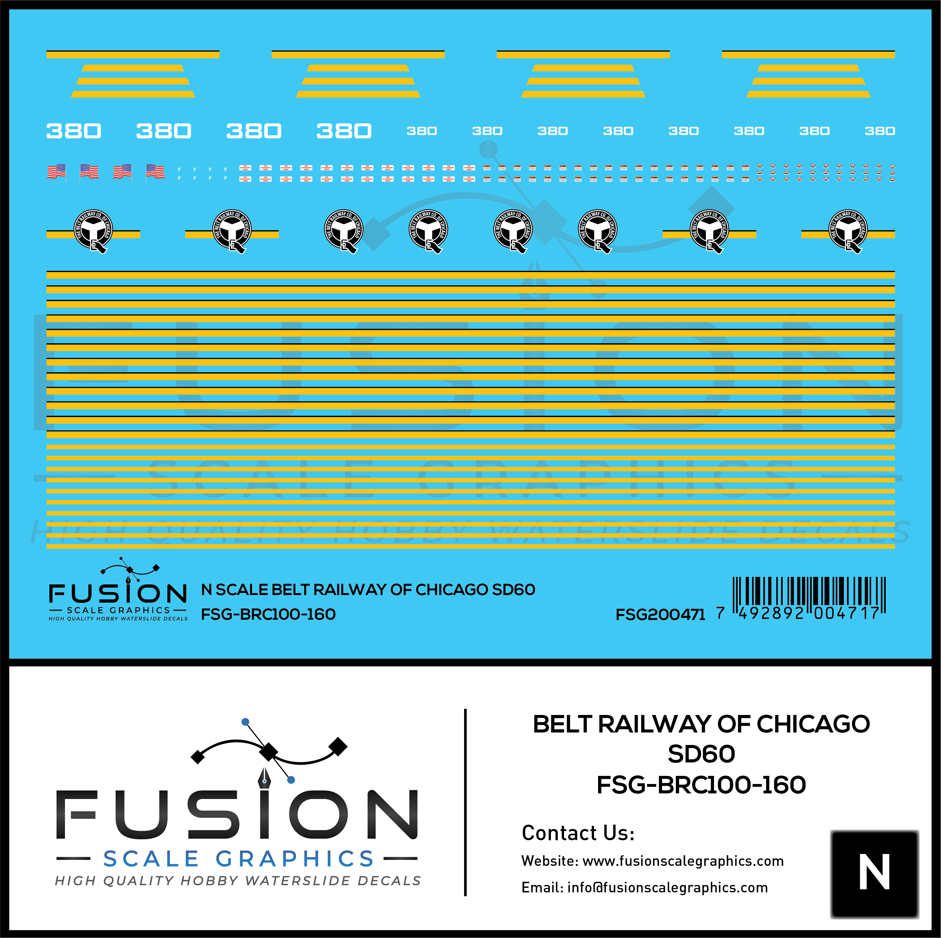 N Scale Belt Railway of Chicago SD60 380 Locomotive Decal Set
