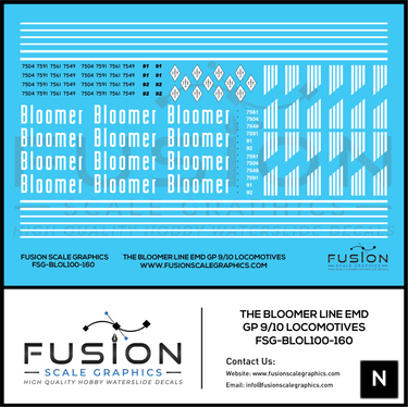 N Scale Bloomer Line EMD GP9 GP10 Locomotives Decal Set.