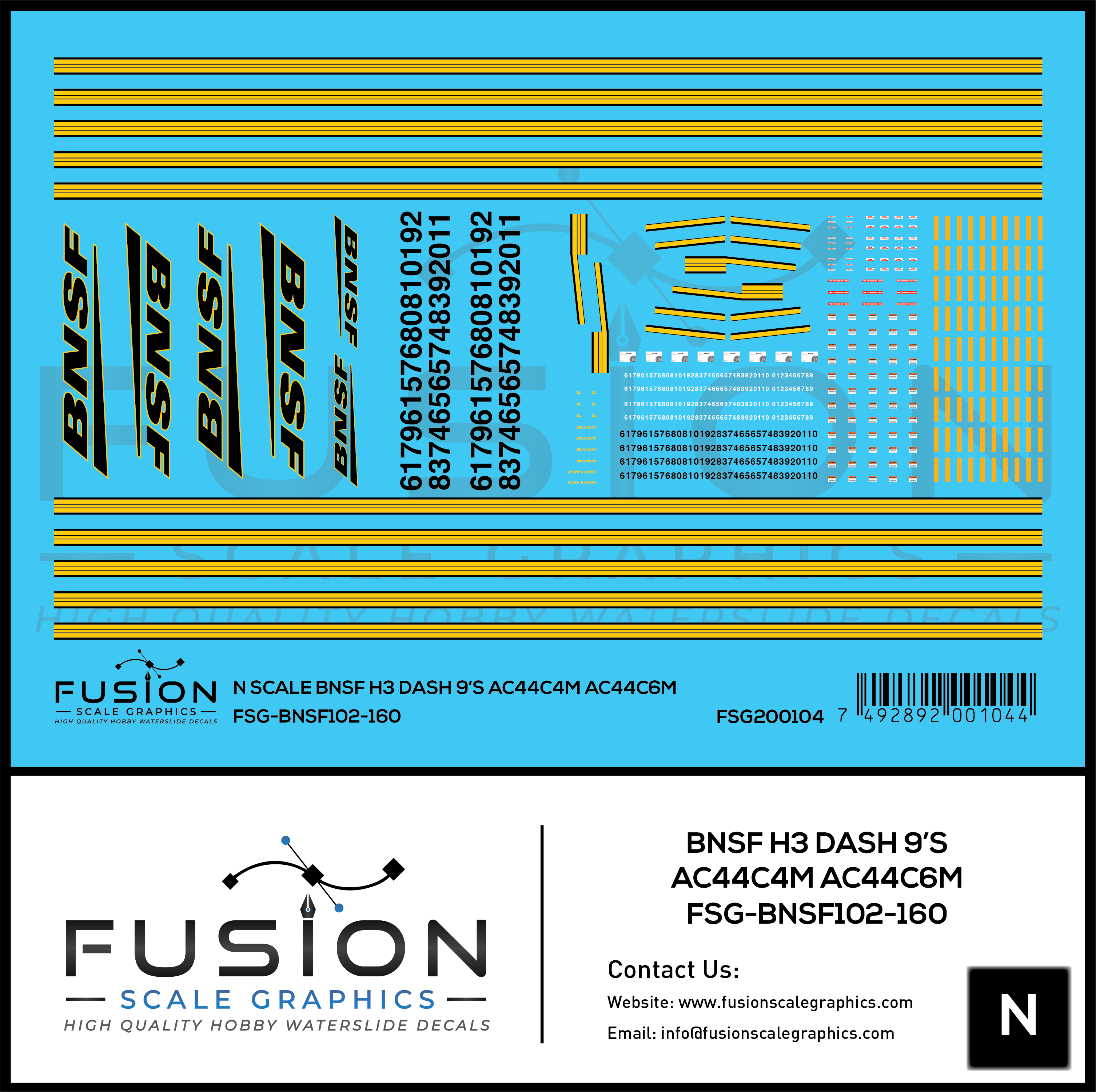 N Scale BNSF Railway H3 GE Dash 9, AC44C4M, AC44C6M Locomotives Decal Set