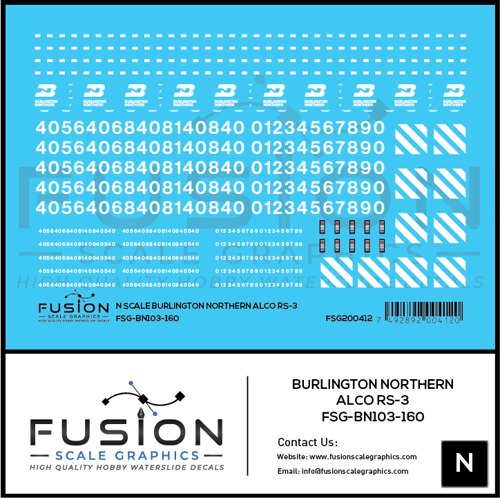 N Scale Burlington Northern Alco RS3 Locomotive Decal Set