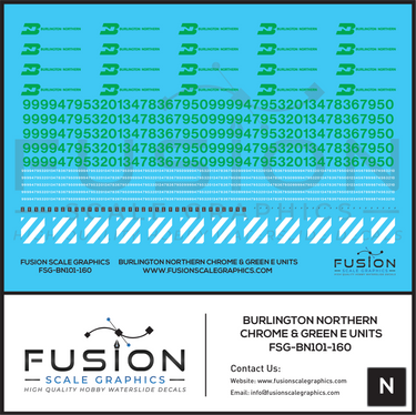N Scale Burlington Northern Chrome & Green E8 E9 Locomotive Decal Set