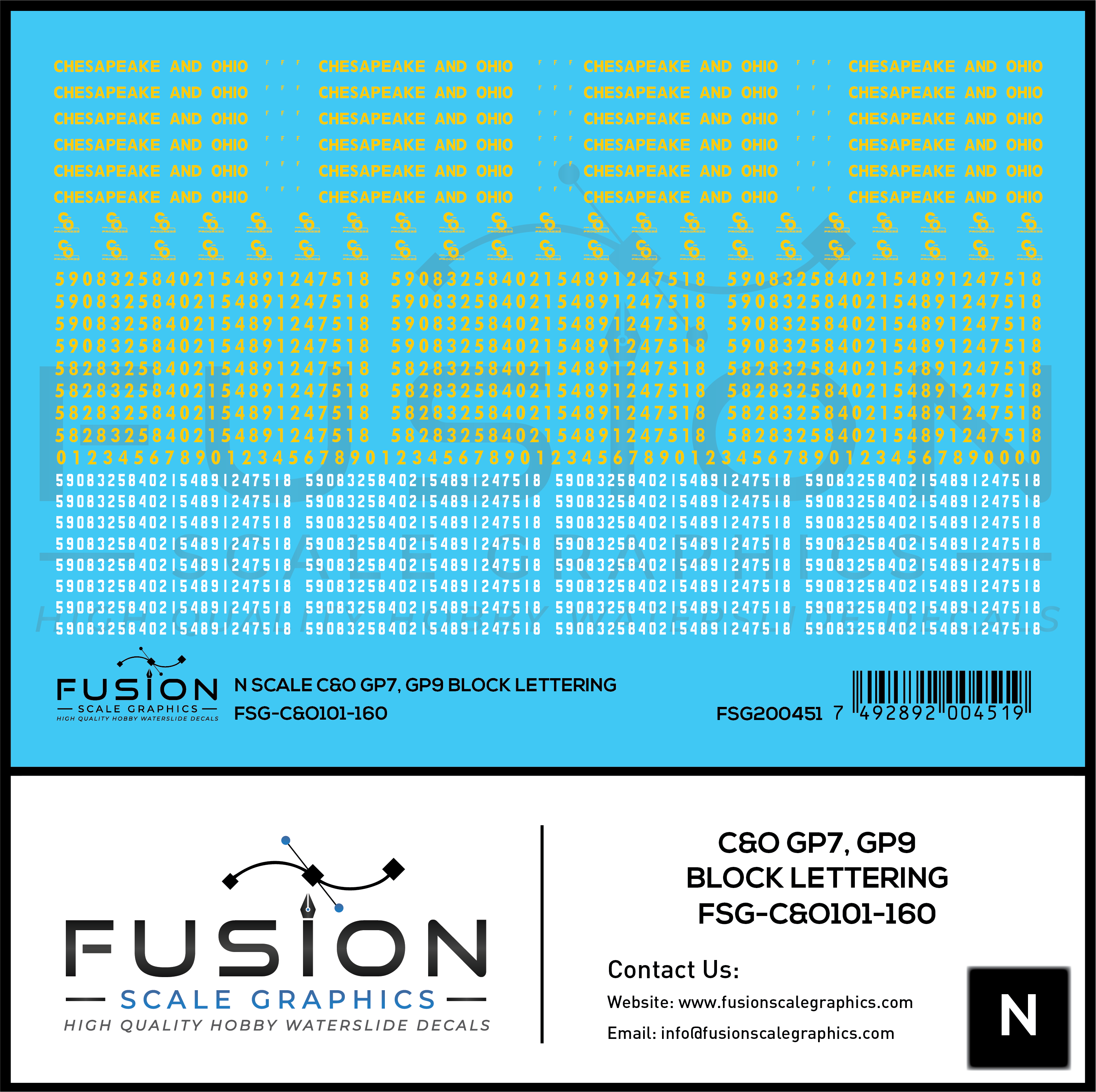 Home Shop Fusion Scale Graphics N Scale Chesapeake & Ohio EMD GP7, GP9 Locomotive Decal Set