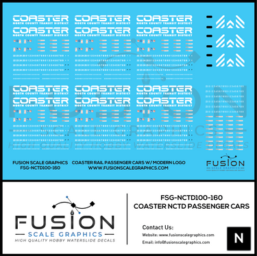 N Scale Coaster Rail NCTD Modern Passenger Car Decals