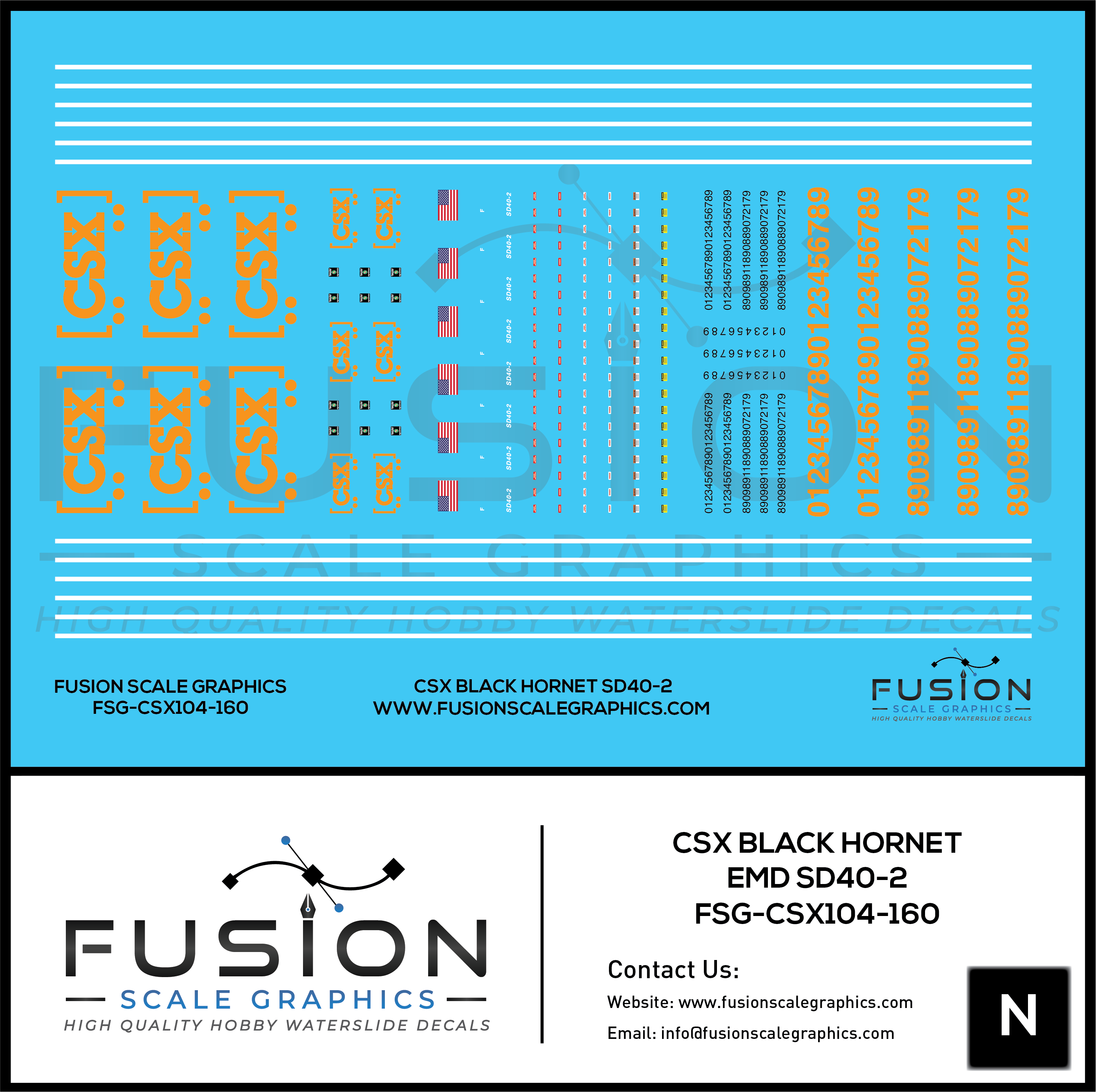 Home Shop Fusion Scale Graphics N Scale CSX Black Hornet EMD SD40-2 Locomotive Decal Set