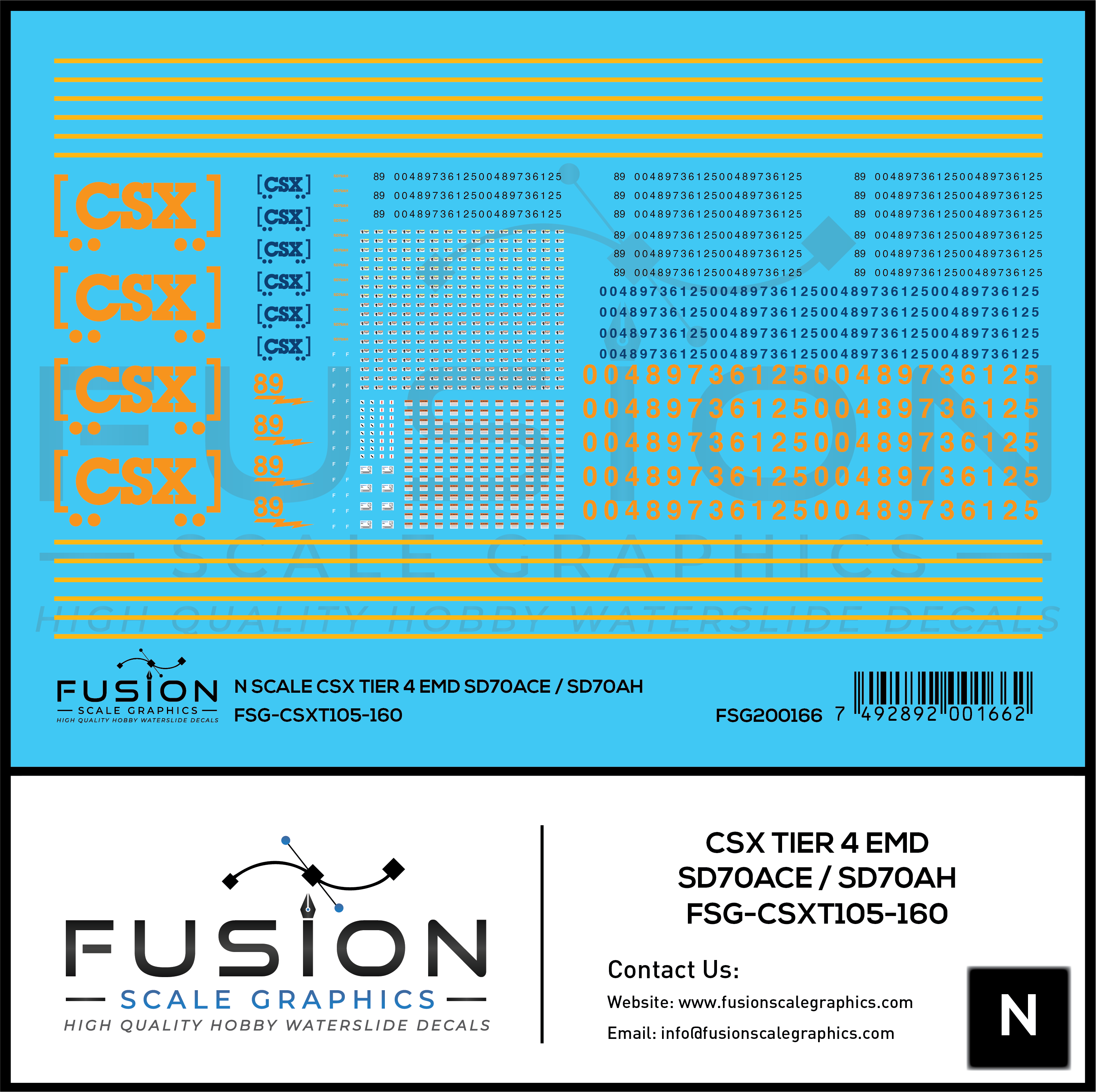 Home Shop Fusion Scale Graphics N Scale CSX EMD T4 SD70ACE SD70AH Locomotive Decal Set